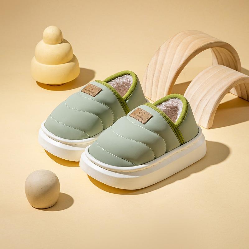 Детские хлопковые тапочки зимние для дома с плюшевой подошвой 27 зелёный