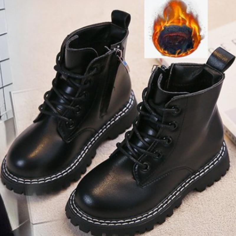 Детские черные ботинки Осень Искусственная кожа Мода Детские короткие ботинки До щиколотки 26-37 Универсальные Дышащие Школьные Мальчики Девочки Обувь 37-Insole22.5cm