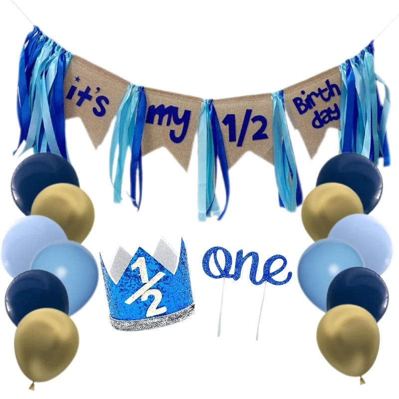 Детские шары на половину дня рождения, баннер, корона, торт, Топпер для мальчика, 1/2 детские украшения на день рождения