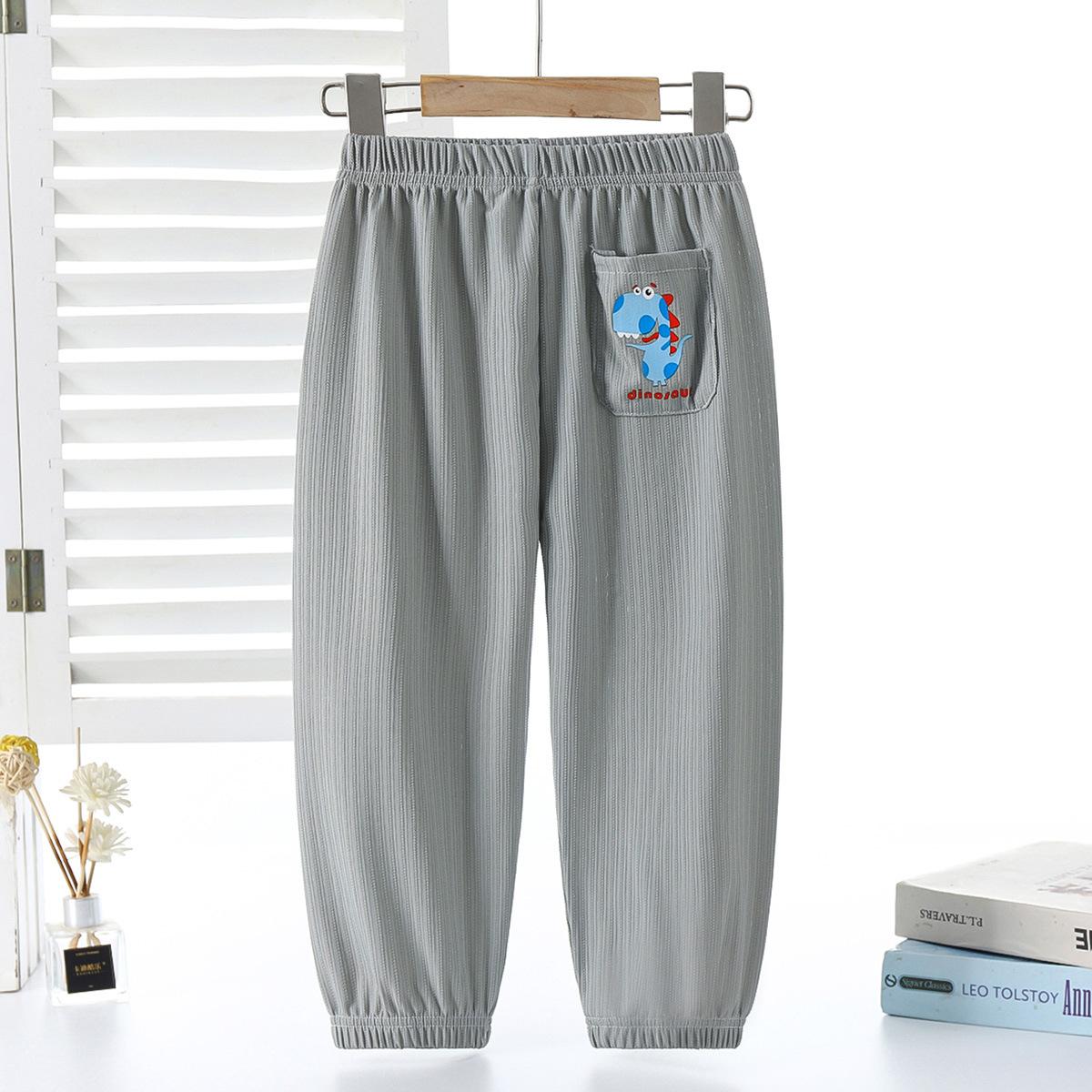Детские штаны с защитой от комаров, летние дышащие брюки с героями мультфильмов, детские штаны из ледяного шелка для мальчиков и девочек 120cm серый
