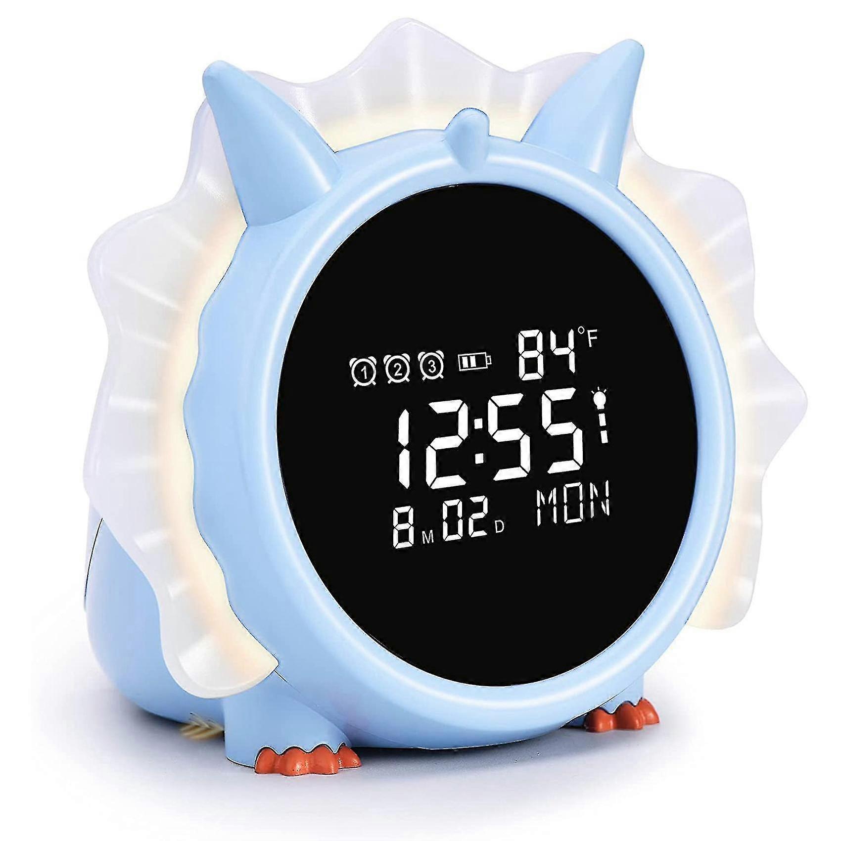 Детский будильник, цифровой будильник с динозавром, перезаряжаемые USB-часы для малышей с ночником для мальчиков и девочек в спальню синий