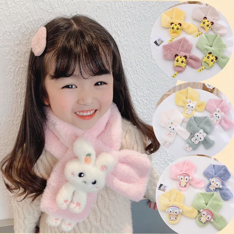 Детский зимний плотный плюшевый шарф с крестом для мальчиков и девочек, детский нагрудник, теплая шаль с милым мультяшным кроликом из искус...