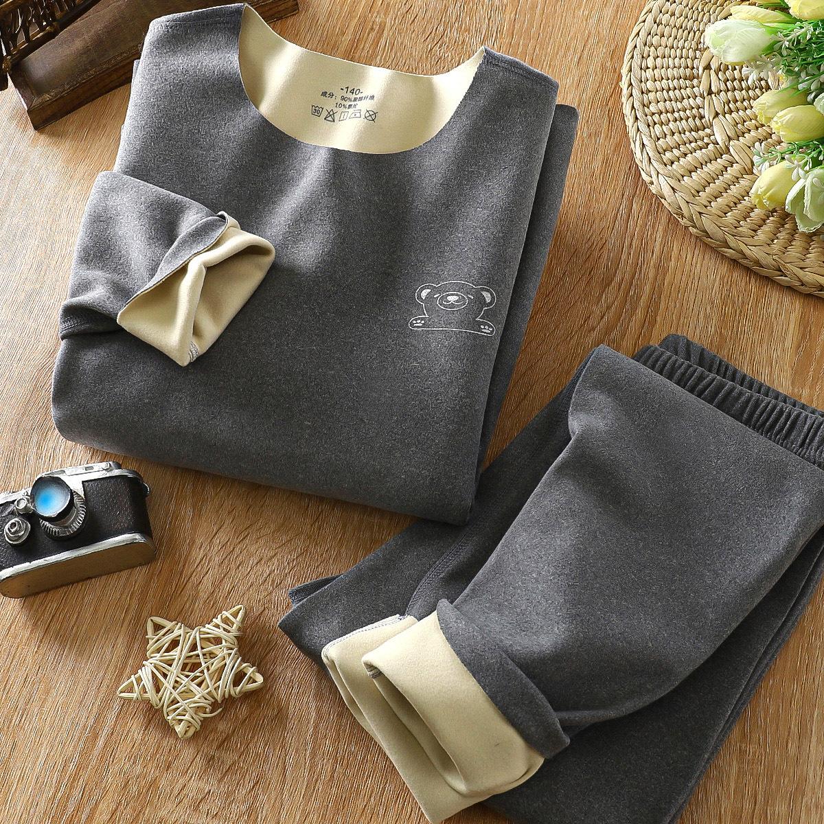 Детский комплект нижнего белья Теплый детский комплект нижнего белья для девочек De Rong Beastless для мальчиков Детская осенняя одежда Осенние брюки Детская одежда 110 серый