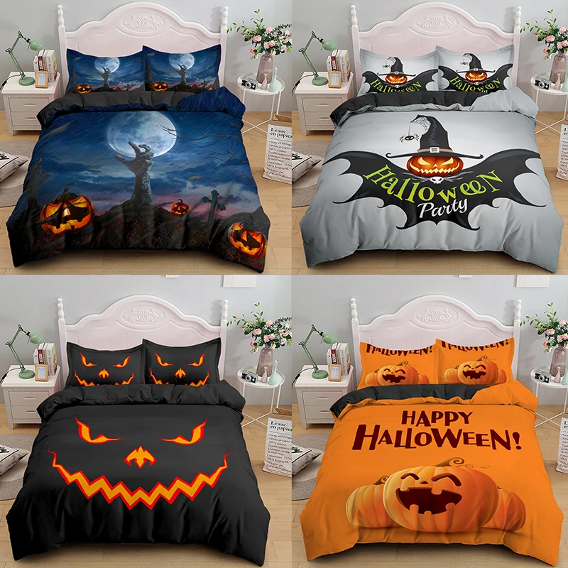 Детский комплект постельного белья на день Хэллоуина, черный пододеяльник с декоративным узором, размер США/Великобритании/Австралии/ЕС с ...
