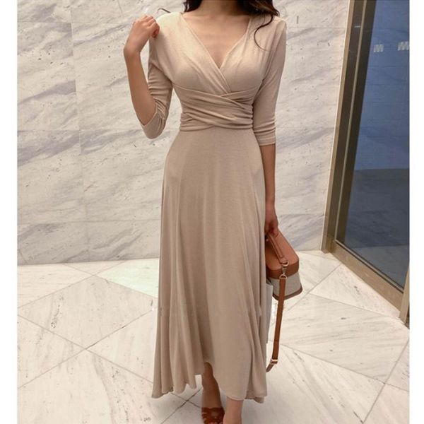 dresses new year 2023 elegant dresses for women spring autumn maxi robe deep vneck bandage vestidos de mujer casual half sleeve, Black;gray