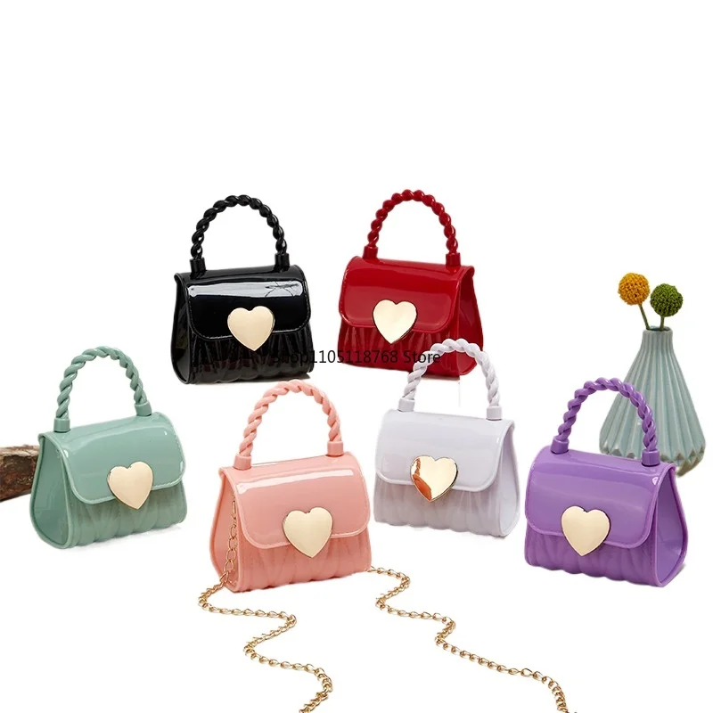 Детский кошелек через плечо из ПВХ, детские модные мини-сумочки, милая сумка с украшением в виде сердца, маленькая желейная сумка на цепочке для девочек
