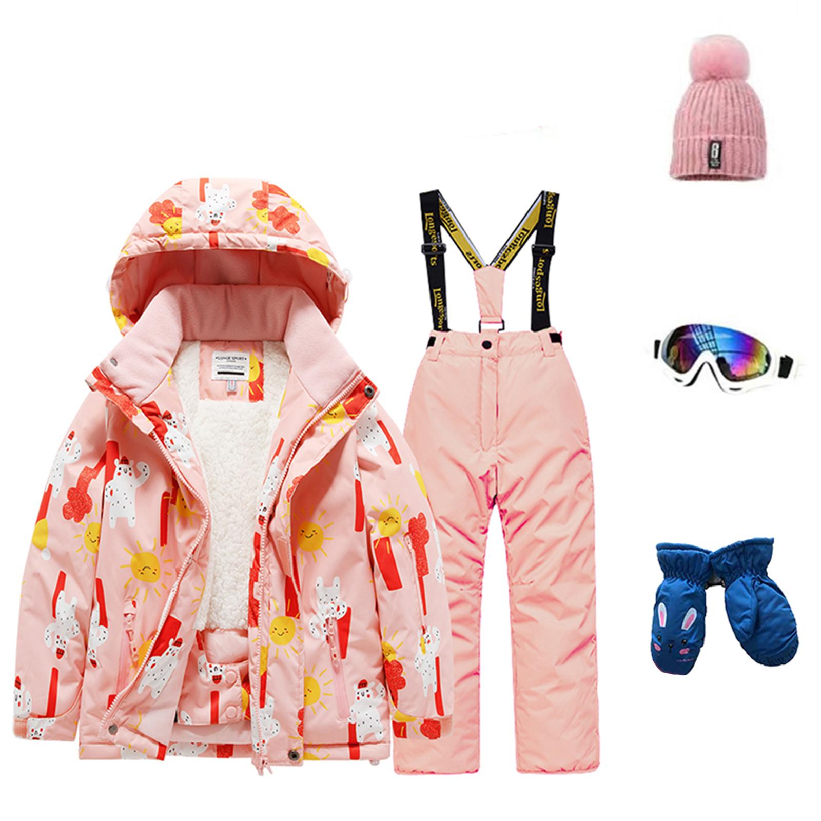 Детский модный лыжный комплект для мальчиков и девочек, утепленный, водонепроницаемый, термобелье, костюм из пяти предметов с курткой и брюками 8 розовый