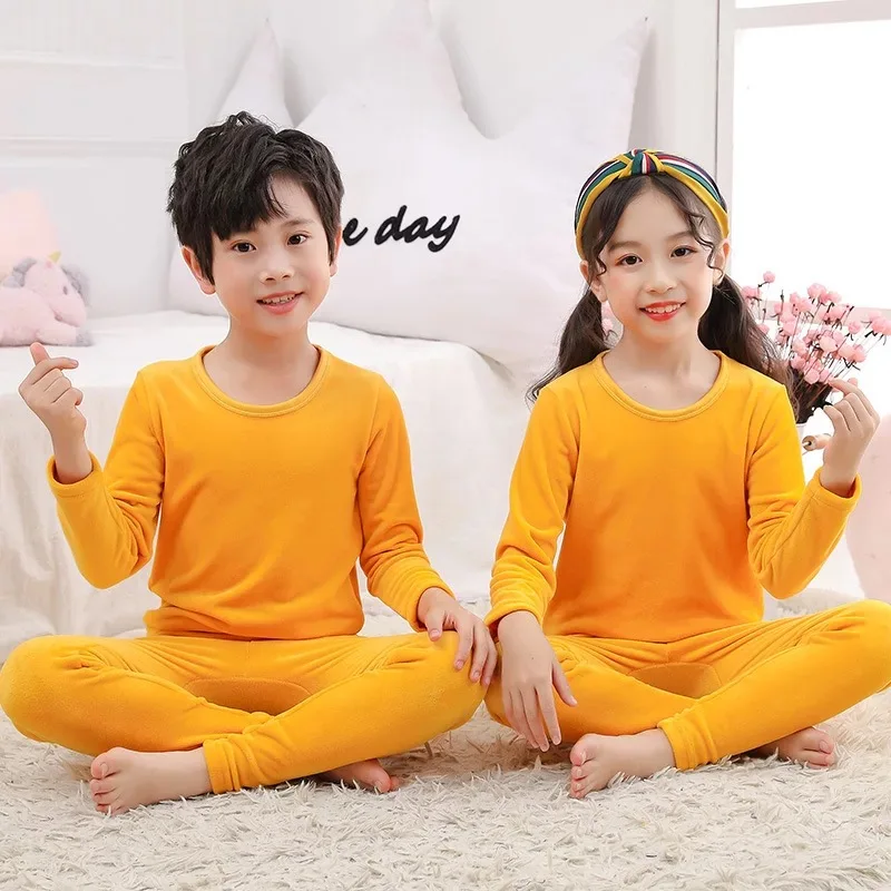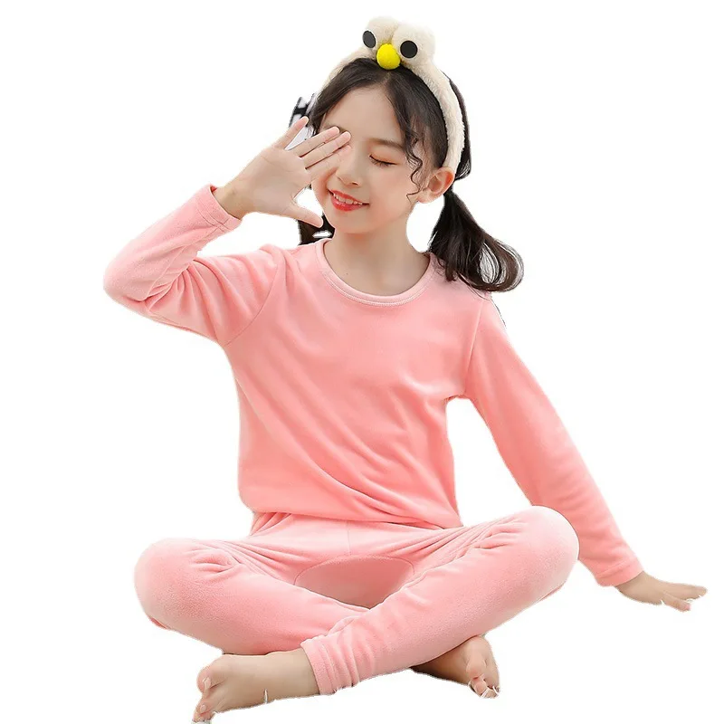 Детский новый золотой Бархатный комплект термобелья для мальчиков и девочек плюс бархатная утепленная домашняя пижама для малышей Qiuyi длин...
