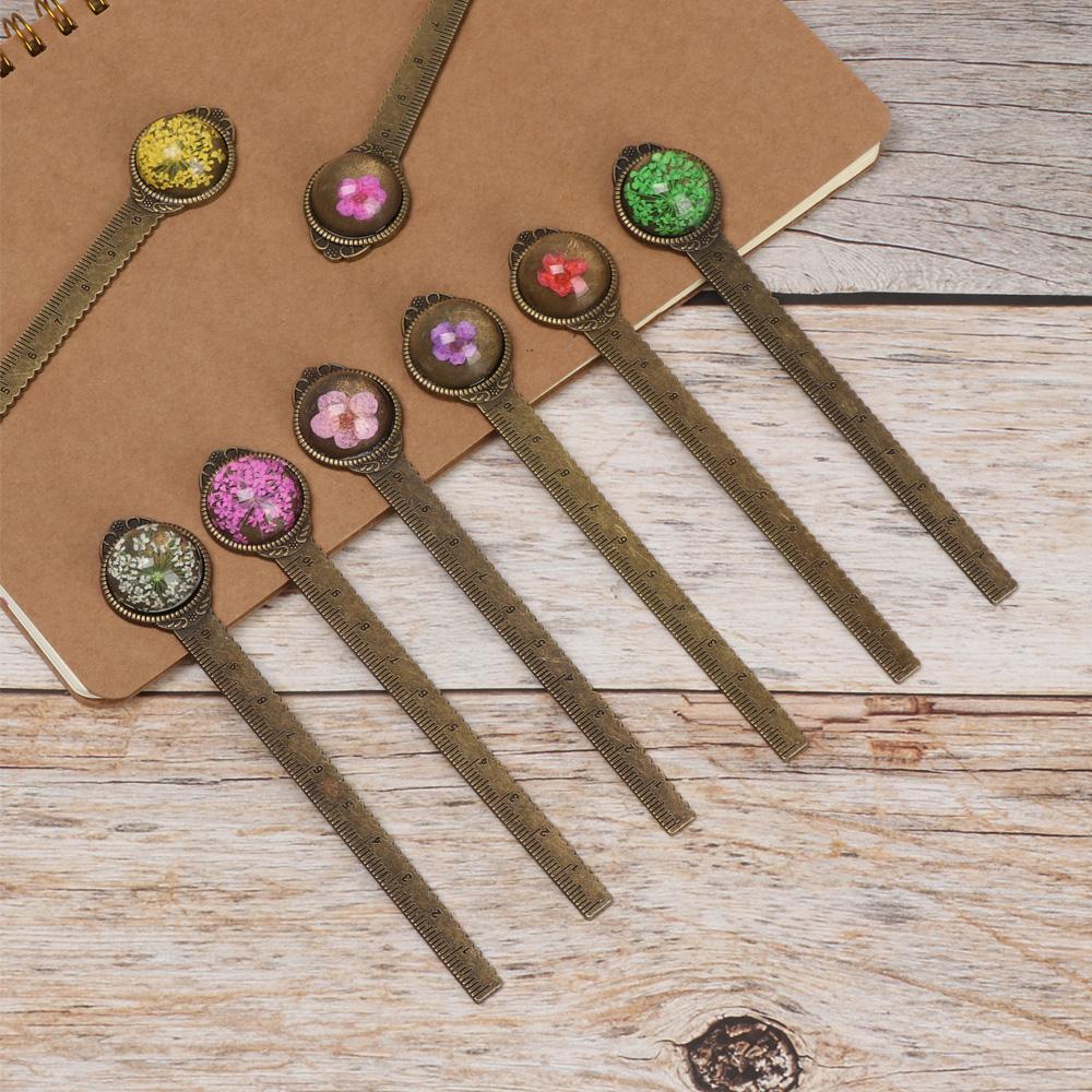 Детский подарок, металлические ретро-креативные книжные маркеры, школьные принадлежности, цветочные закладки, бронзовая линейка