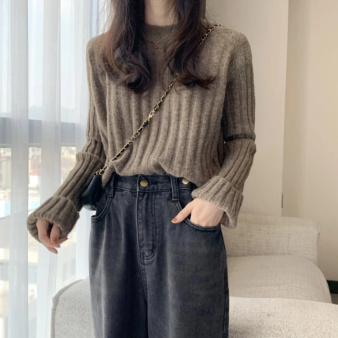 Winter New style Korean Loose O Neck pit stripe thickened Pullover Sweater Women 7 colors Long Sleeve Knitted Sweater 534F