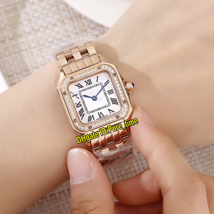 New Panthere 27mm W3PN0007 White Dial Swiss Quartz Womens Watch Diamond Bezel Rose Gold Bracelet Sapphire Ladies Fashion Watches Pure_time, Custom waterproof service