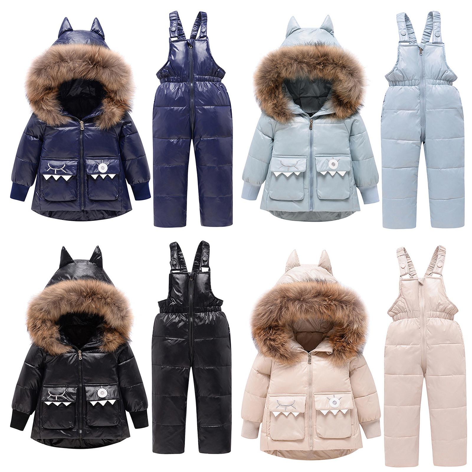 Детский пуховик с капюшоном из мультфильма для маленьких девочек, пальто, зимний комбинезон + штаны-комбинезон, комплект из 2 предметов