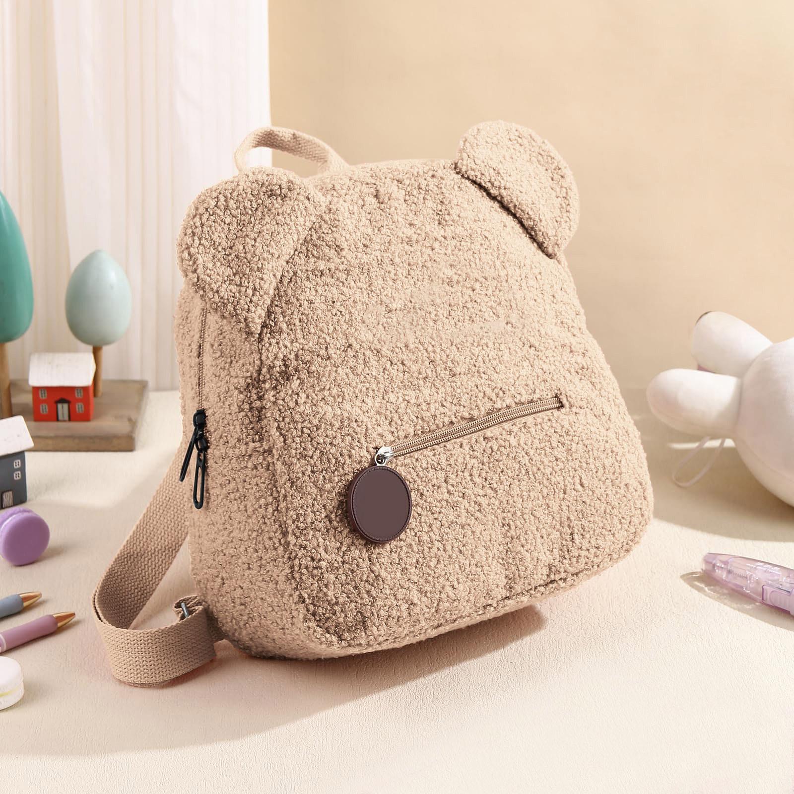 Детский рюкзак в форме милой формы с регулируемыми плечевыми ремнями, однотонная симпатичная плюшевая сумка One Size хаки