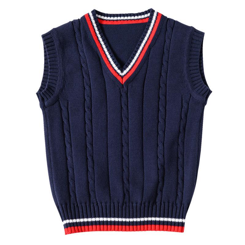 Детский хлопковый вязаный жилет для мальчиков и девочек - осенне-зимняя школьная форма 150 cm