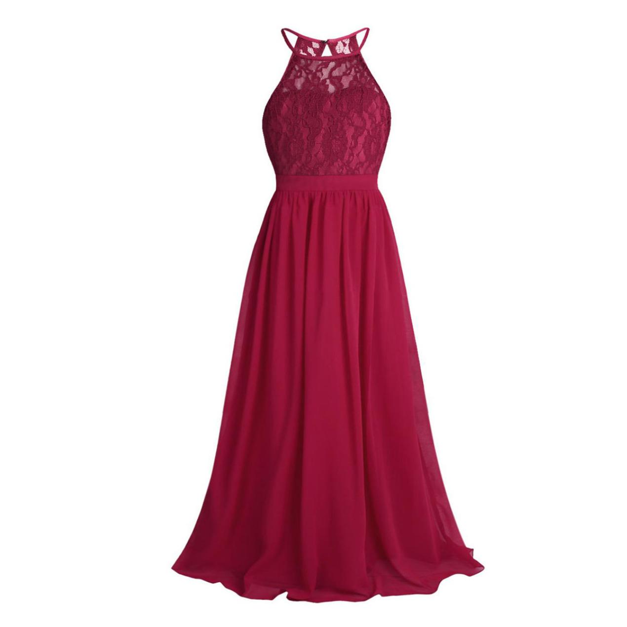 Детское кружевное шифоновое платье с цветочным узором с лямкой на шее, свадебное бальное платье подружки невесты, праздничное платье принцессы, вечерние макси-платье 7-8 Years бордовый