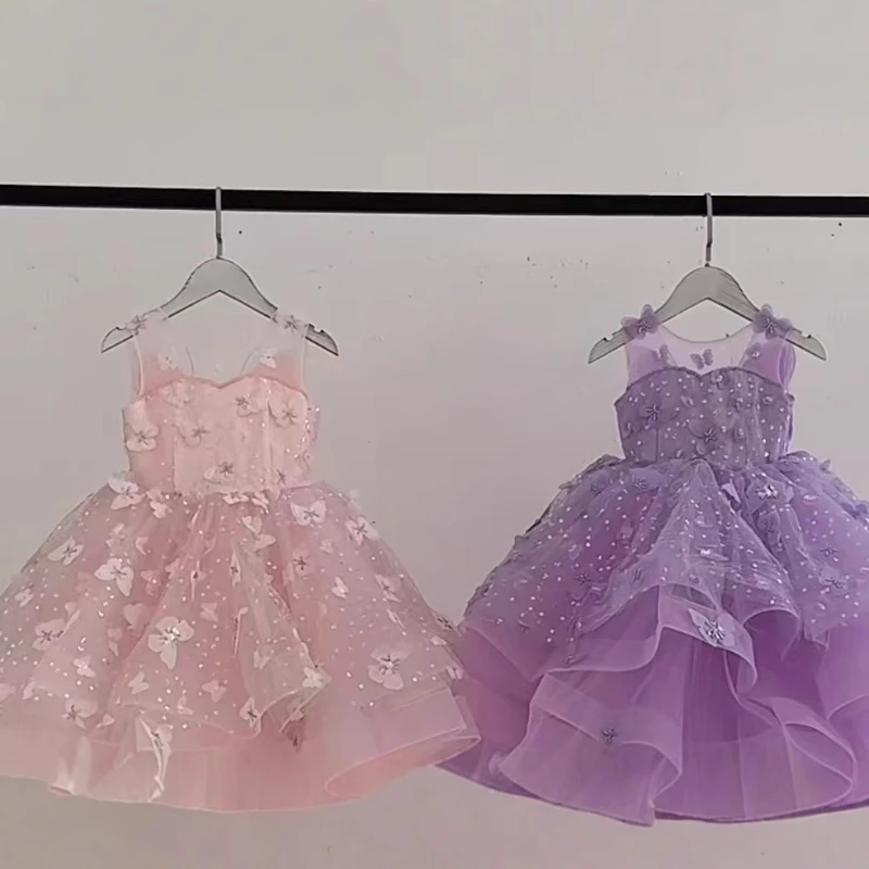 Детское милое пышное тюлевое платье для девочек, одежда, новое праздничное платье принцессы, праздничное платье с цветочным узором для девочек на свадьбу, модель для шоу, пышные платья