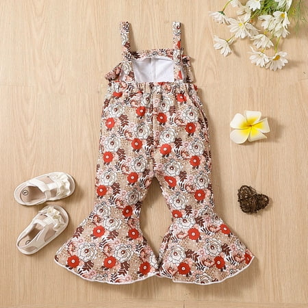 PEASKJP Girls Jumpsuits Rompers Overalls Lightweigh Soft Toddler Baby Girl Ruffled Sleeveless Romper Casual Summer Jumpsuit Cotton Linen Clothes Coffee 12-18 Months