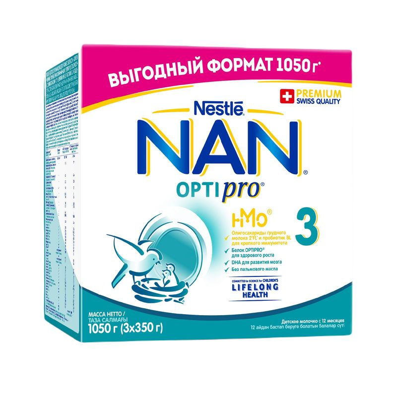 Детское молочко NAN 3 Optipro для роста иммунитета и развития мозга с 12 месяцев 1050 г