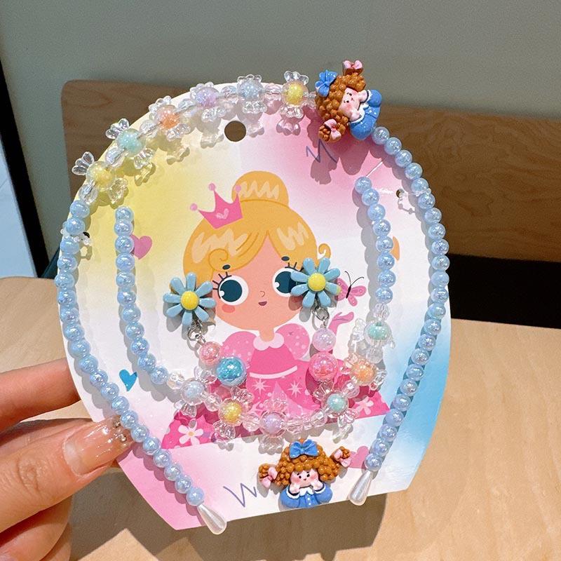 Детское ожерелье, комплект украшений, ослепительный браслет из бисера, мультяшная повязка на голову, серьги, аксессуары для девочек-принцесс
