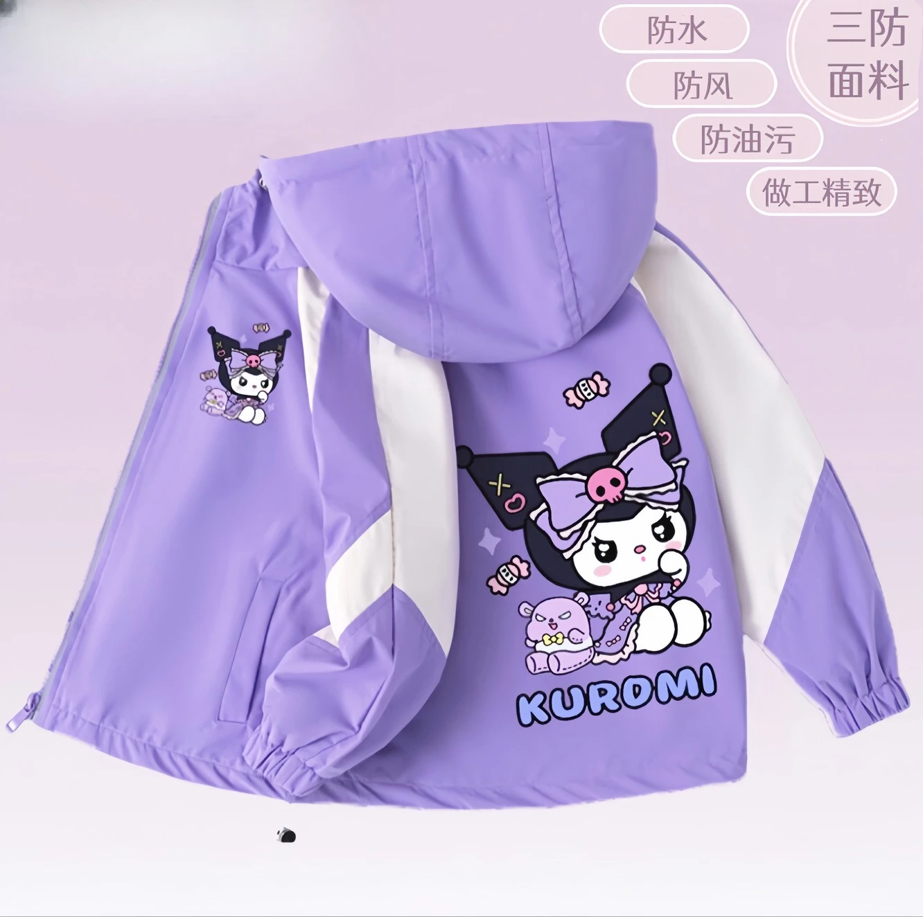 Детское пальто Sanrio с героями мультфильмов Kuromi, кавайная уличная куртка с капюшоном для девочек, модная милая весенне-осенняя одежда для отдыха, подарок для девочек, новинка