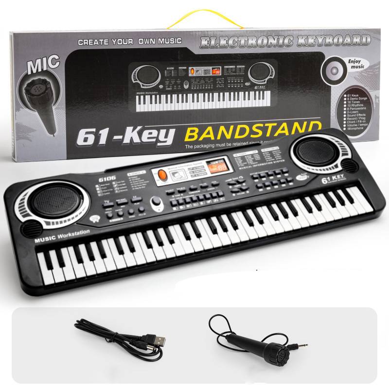 Детское пианино электрическое 61 клавиша электронная органная клавиатура музыкальный инструмент набор ребенок чёрный
