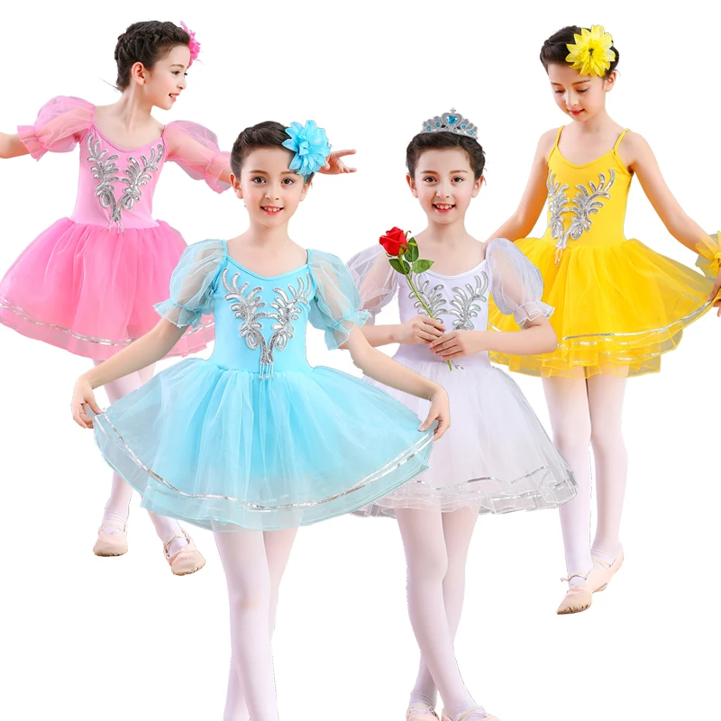 Детское платье для выступлений, балетная юбка с пузырьковыми рукавами, танцевальная юбка из чистого хлопка в виде лебедя для девочек с анге...