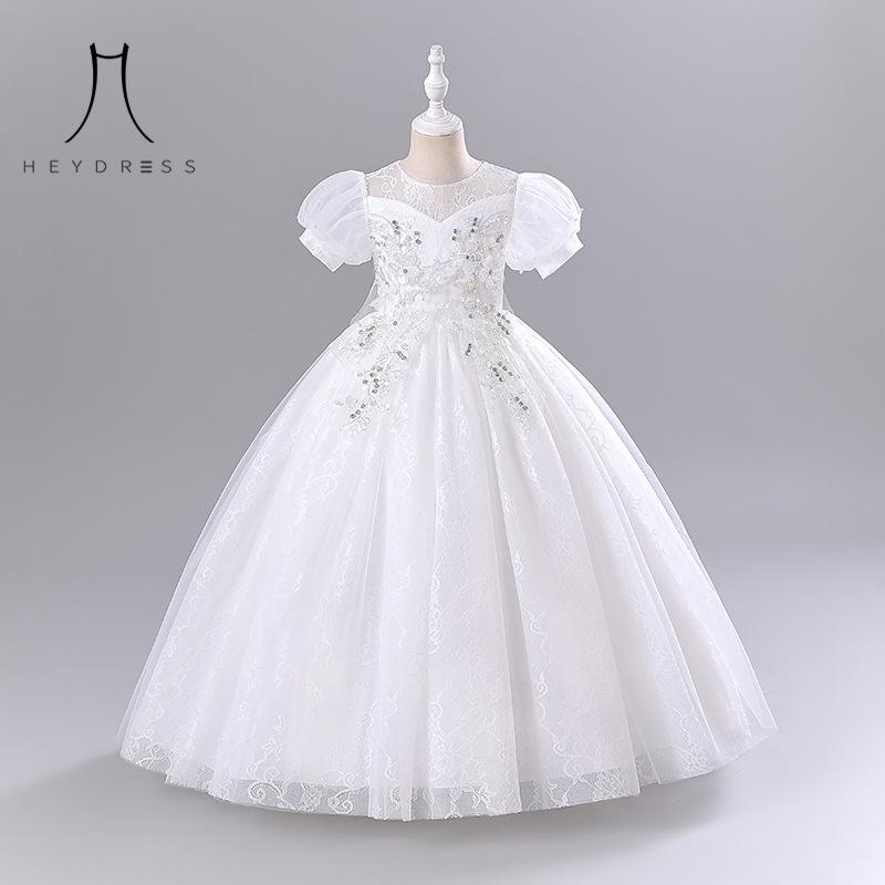 Детское платье для годовалого возраста, свадебное платье принцессы, вечернее платье с цветочным узором для девочек 130 белый