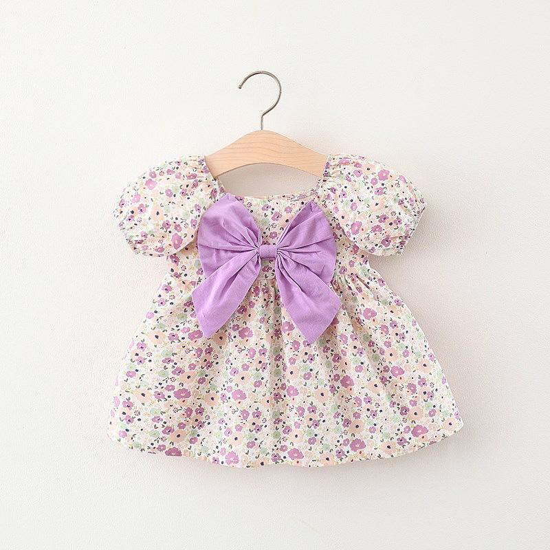 Детское платье, летняя новинка, маленькое платье с короткими рукавами и цветочным принтом для маленьких девочек, юбка принцессы 80cm