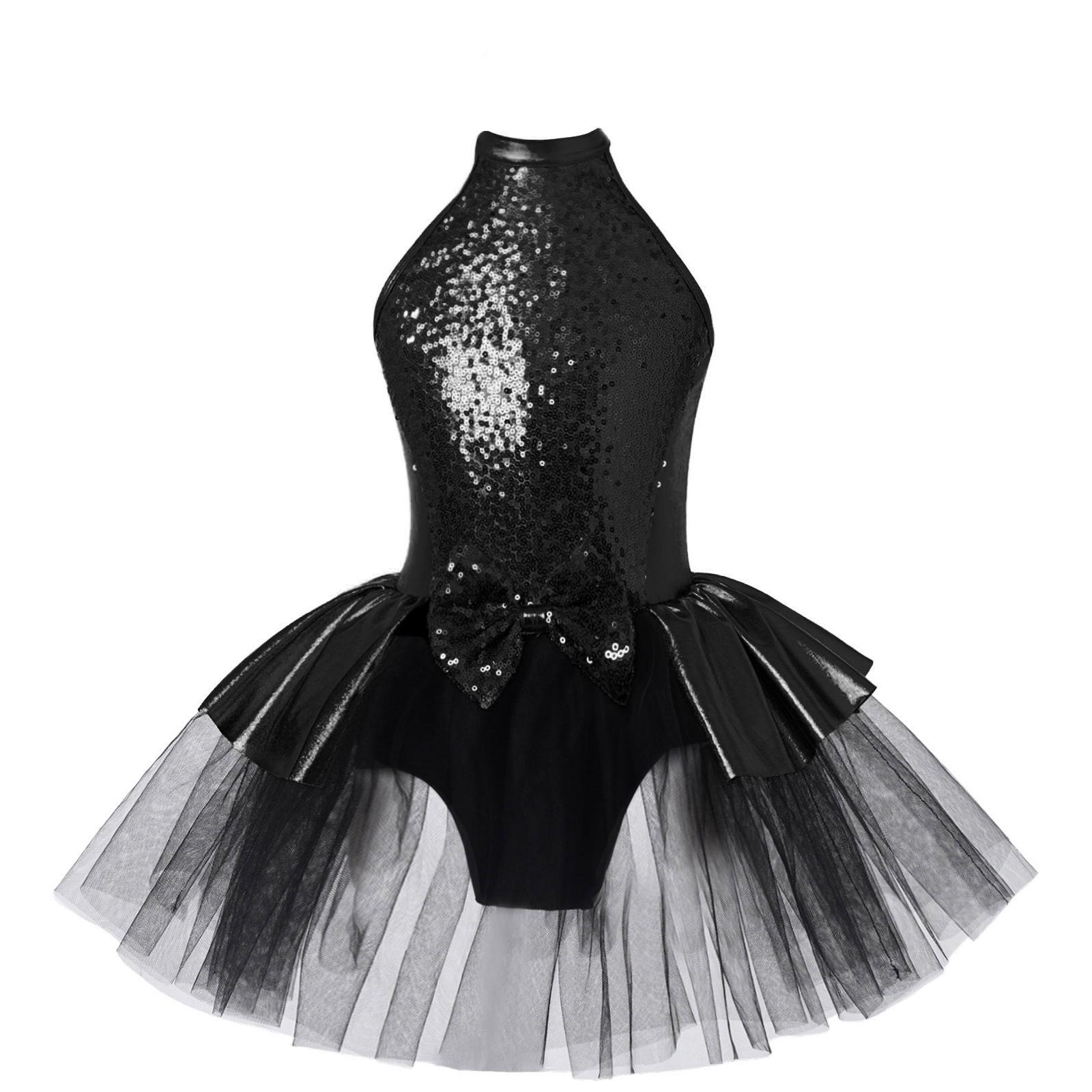 Детское платье-пачка с блестками и блестками на бретельках на шее, вырезом сзади, балетное танцевальное платье-пачка, купальник, костюм балерины для соревнований, сценический костюм 15-16 Years