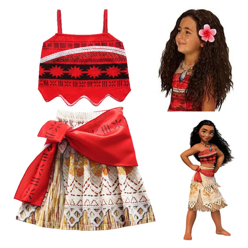 Детское платье принцессы для девочек, платье Эльзы Моана, приключения, комплект платья для девочек с париком и ожерельем, детская одежда для косплея ваяна
