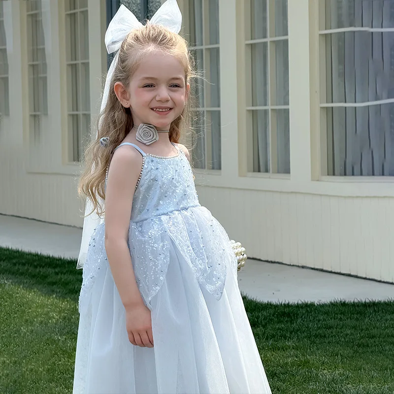 Детское платье с вуалью, летнее тюлевое платье для маленьких девочек, платье принцессы для малышей, элегантные платья на бретельках с блестками для девочек на день рождения