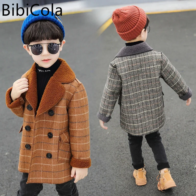 Детское повседневное шерстяное пальто; Коллекция 2022 года; Сезон осень-зима; Красивая плюшевая бархатная плотная верхняя одежда для мальчик...