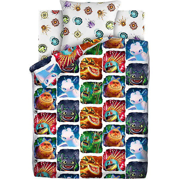 Яркий комплект украшен рисунками по мотивам известного мультфильма о драконах. Постельное белье сшито из полностью натуральных материалов, которые отличаются прочностью. Мягкие изделия приятны на ощупь, легко стираются и гладятся. Комплект надолго сохраняет форму и цвет.