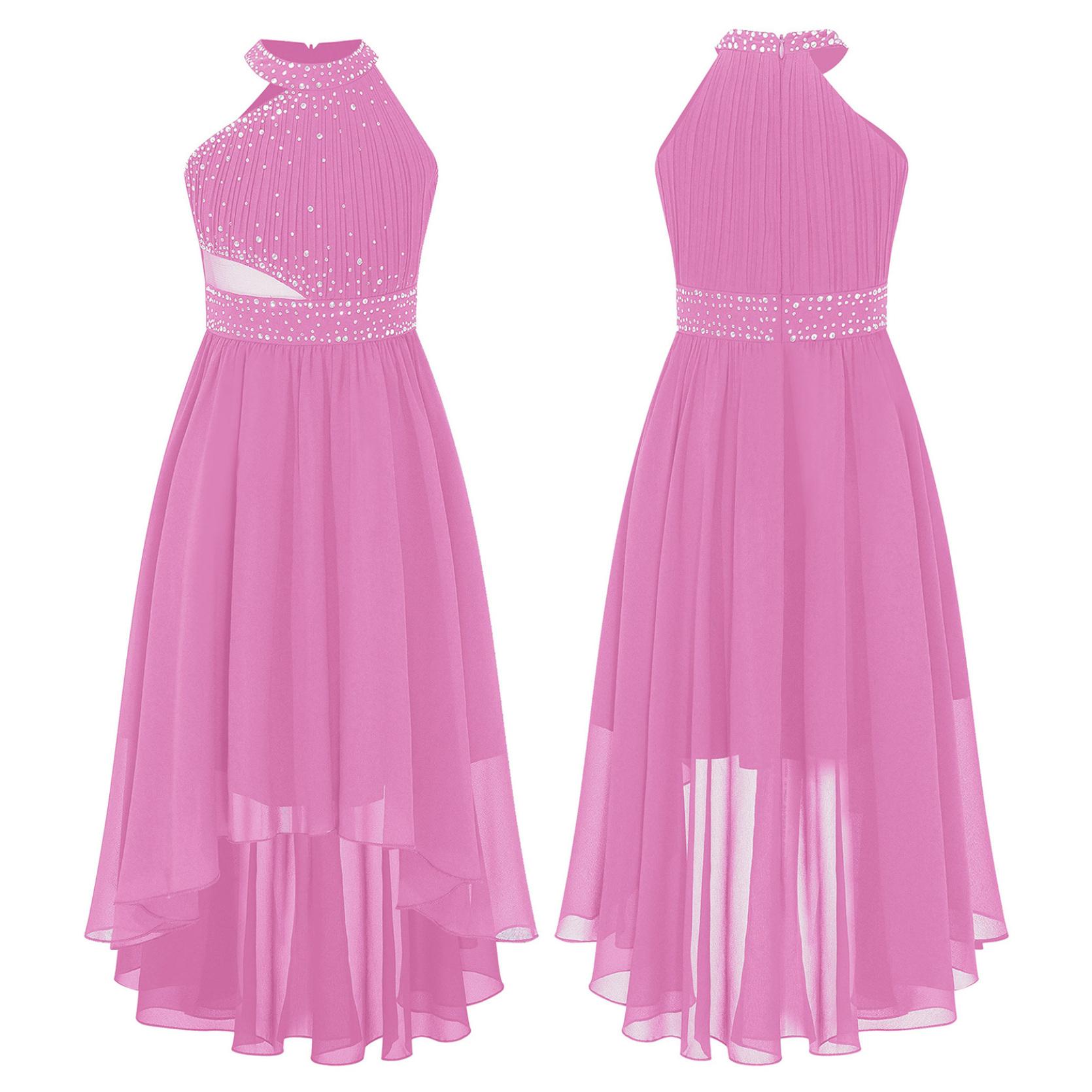 Детское праздничное платье с блестящими стразами для девочек, шифоновое платье без рукавов со складками и высокой талией, элегантные вечерние платья для выпускного вечера 5-6 Years розовый
