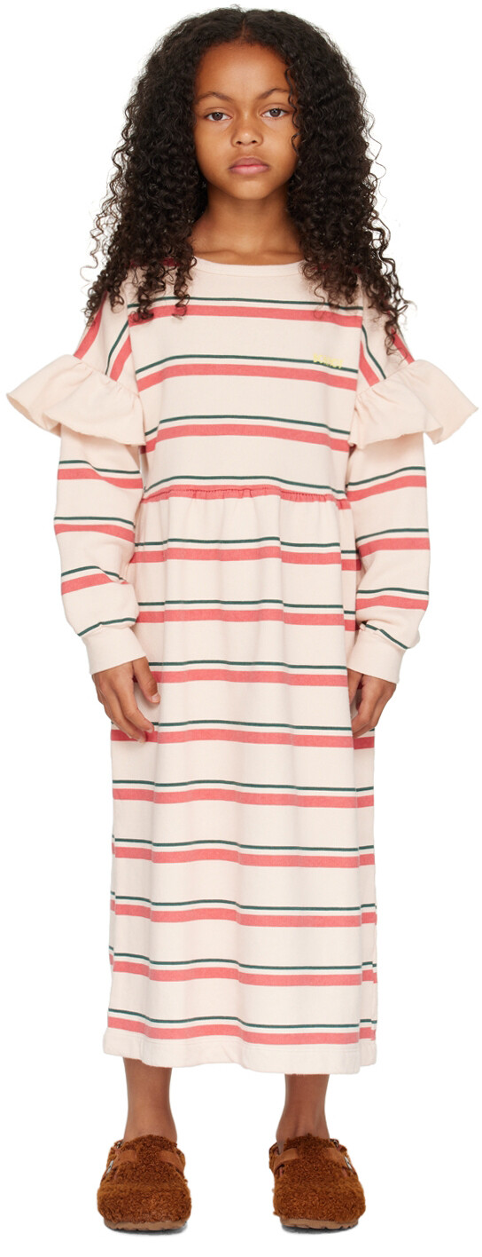 Детское розовое платье в полоску с рюшами Bonmot Organic, Розовый, Детское розовое платье в полоску с рюшами Bonmot Organic