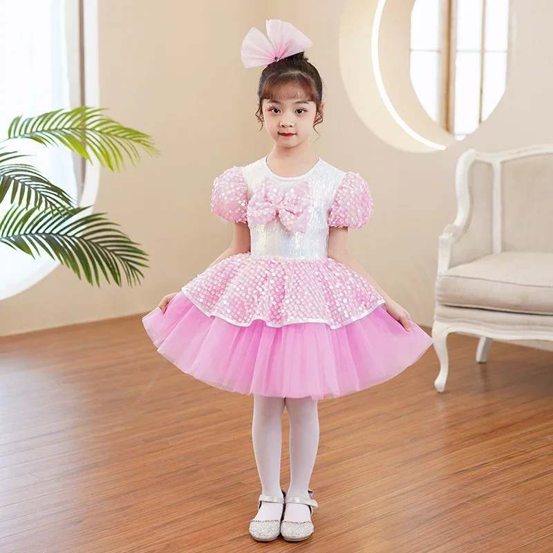 Детское современное платье для выступлений, 1 июня, розовая Пышная юбка с блестками для девочек и дошкольников, юбка принцессы для девочек