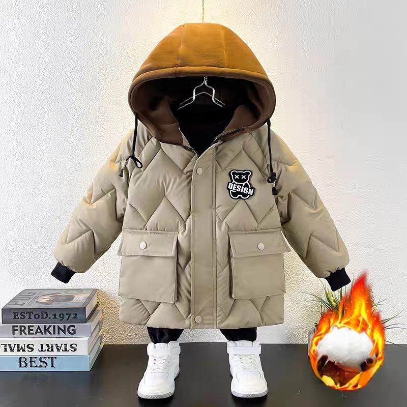 Детское флисовое пальто, осенне-зимняя модная стеганая куртка с капюшоном для мальчиков