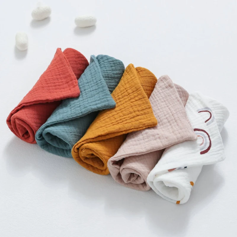 Детское хлопковое квадратное полотенце, Мочалка для рук и лица, носовой платок, муслиновая ткань, слюнявчик для кормления, слюнявчик