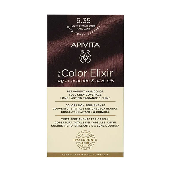 Перманентное окрашивание My Color Elixir Apivita, цвет light brown gold mahogany