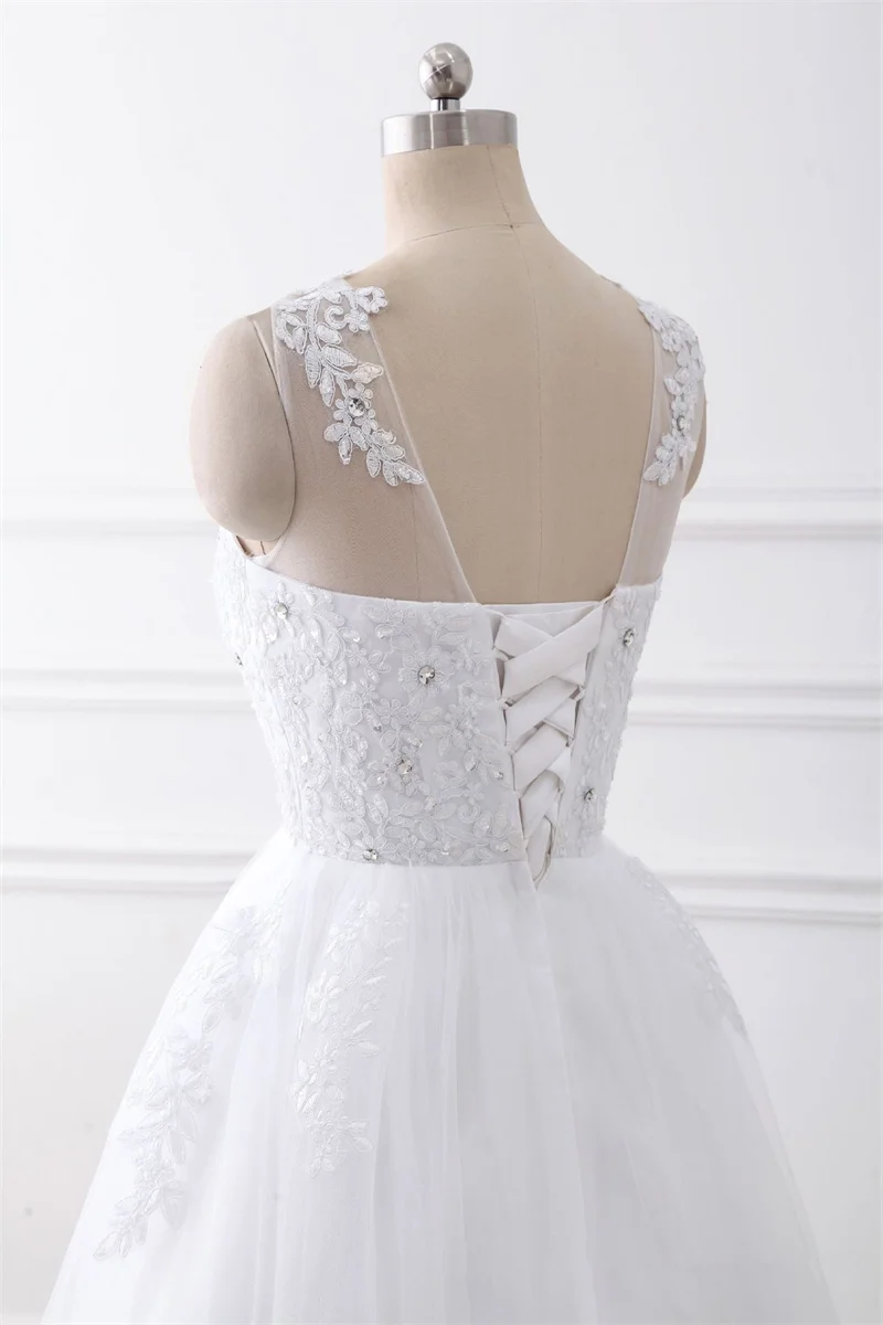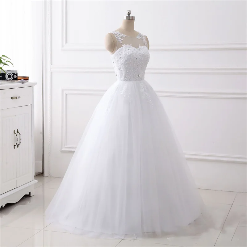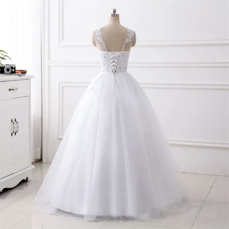 Дешевые Простые А-силуэта Атласная Сетка Тюль V-образным Вырезом Длина Пола Аппликация Блестки Бисероплетение Свадебные Платья Свадебное Платье Корсет Назад