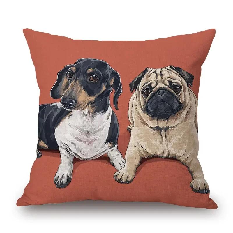 Джек Рассел Мопс Чарльз Спаниель Собака Животные Ручная роспись Наволочки для подушек Декоративные подушки для дивана 66x66cm зелёный