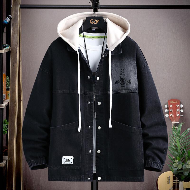 Джинсовая куртка мужская для ученика средней школы, осенняя, подростковая, с капюшоном, модная, с накладной грудью, топ, большое детское пальто 4XL