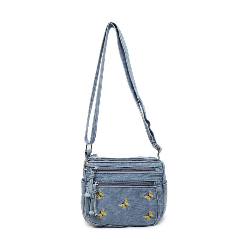 Джинсовая сумка кроссбоди с вышивкой бабочек, многослойная сумка для мобильного телефона, женская маленькая квадратная сумка светло-синий