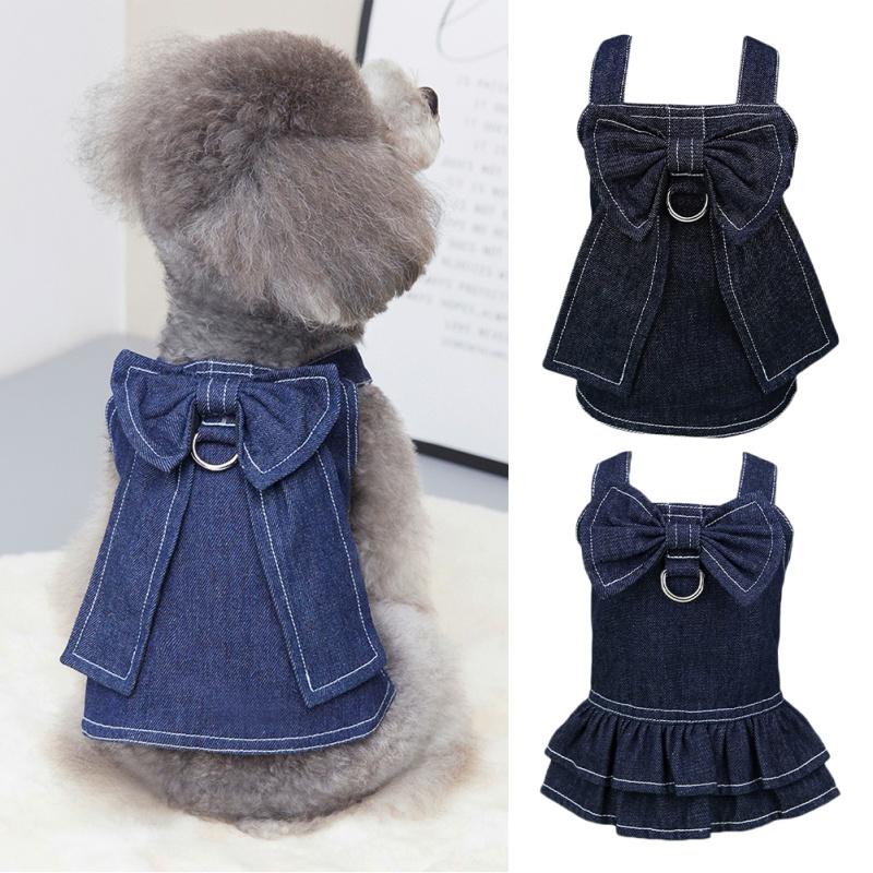 Джинсовое платье для домашних животных, весна-лето, удобное летнее платье для щенков для маленьких и средних собак, кошек, милая юбка для собак с бантом
