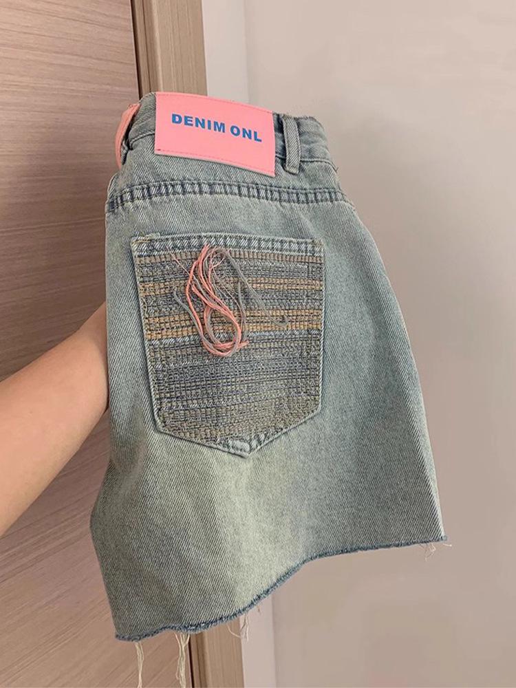 Джинсовые шорты больших размеров с высокой талией и необработанным краем - Женские летние А-силуэта с широкими штанинами, стройнящие хот-пэнтс XL