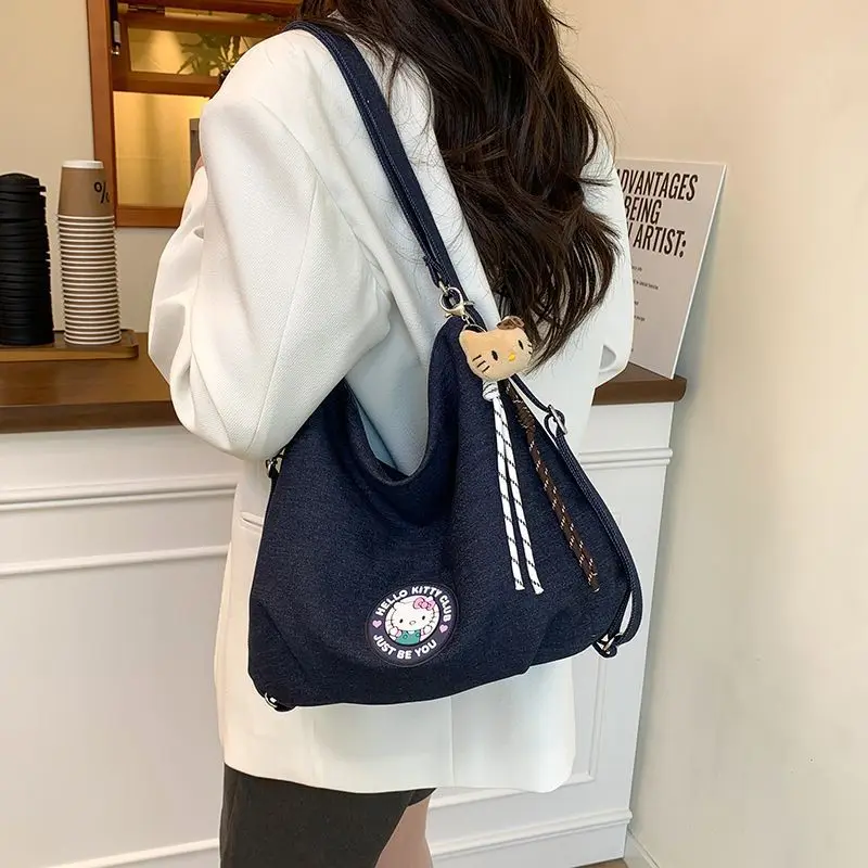 Джинсовый рюкзак Hello Kitty в стиле ретро Sanrio, сумка через плечо с принтом, летняя новая стильная сумка для девочек, большая вместительная горячая сумка на плечо, праздничный подарок