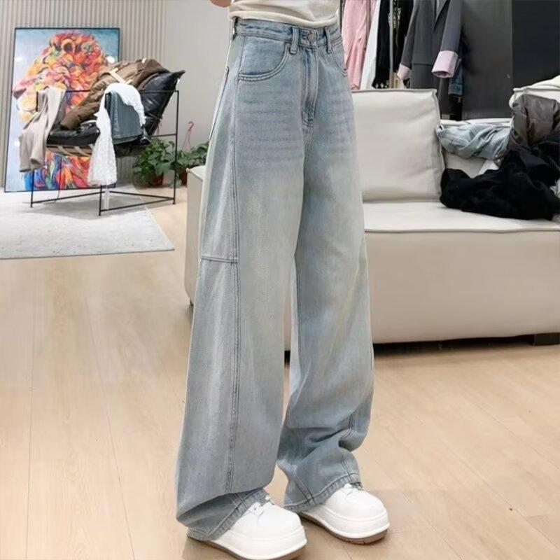 Джинсы американского кроя больших размеров с широкими штанинами, драпирующиеся, прямого кроя для женщин - Весна/Осень 3XL синий