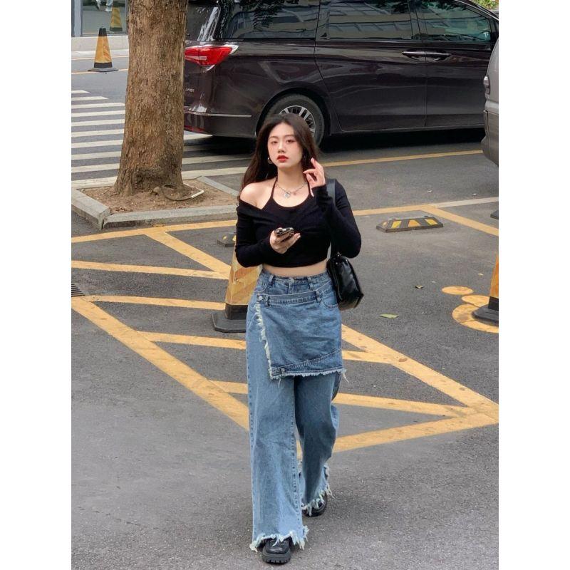 Джинсы большого размера для толстой сестры, дизайнерский смысл, нишевые джинсы, женские осенние корейские версии, тонкие прямые брюки для мытья полов, модные широкие брюки