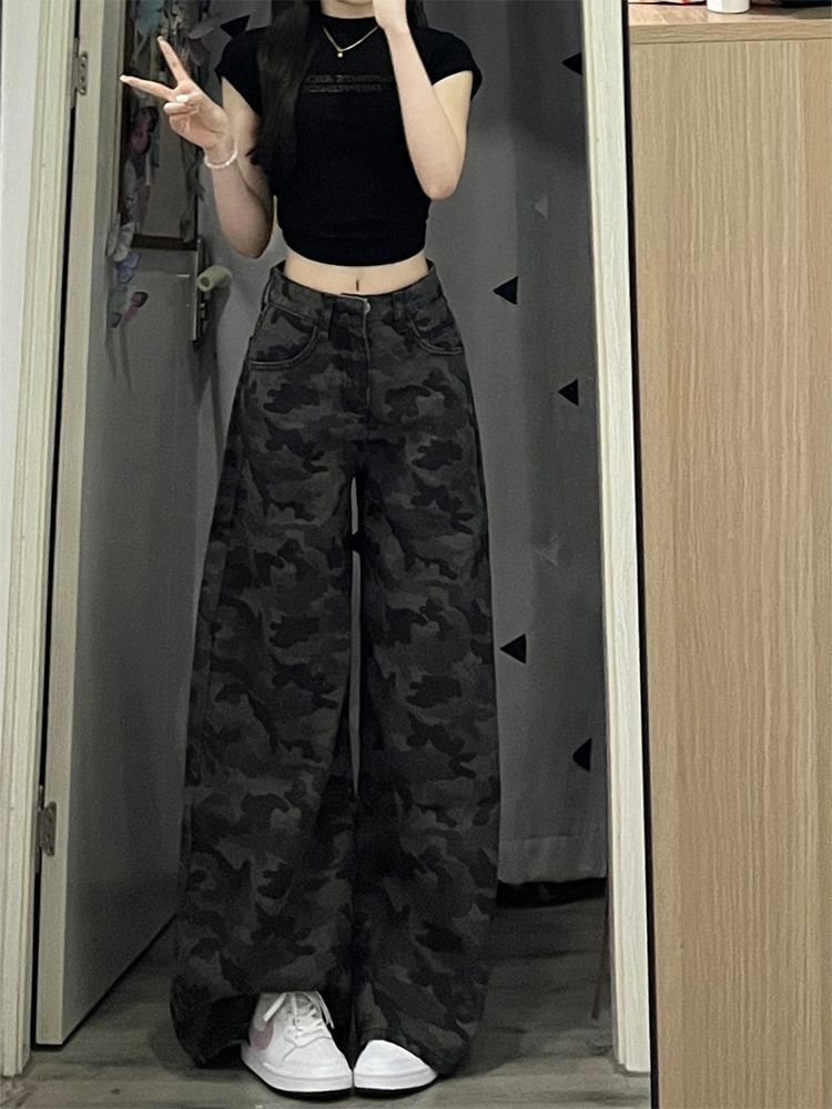 Джинсы деним рабочего кроя с широкими штанинами женские с высокой посадкой для фигуры типа «груша» свободные драпирующиеся большого размера прямые брюки ретро мешковатые длинные джинсы для леди 4XL