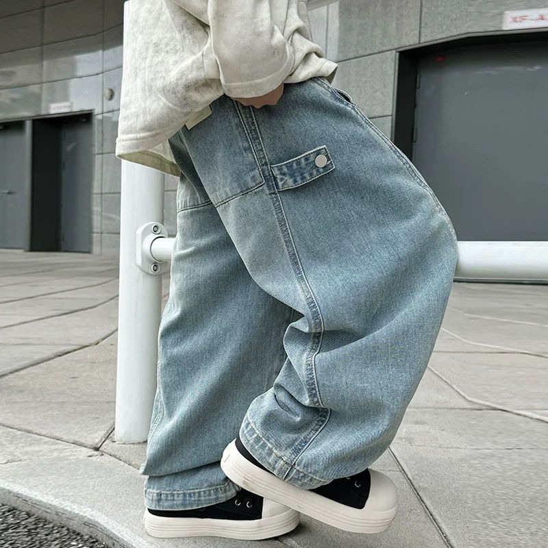 Джинсы для мальчиков Весна и осень Детская красивая рабочая одежда Повседневные брюки Прямые брюки Широкие брюки для мальчиков Модные 150